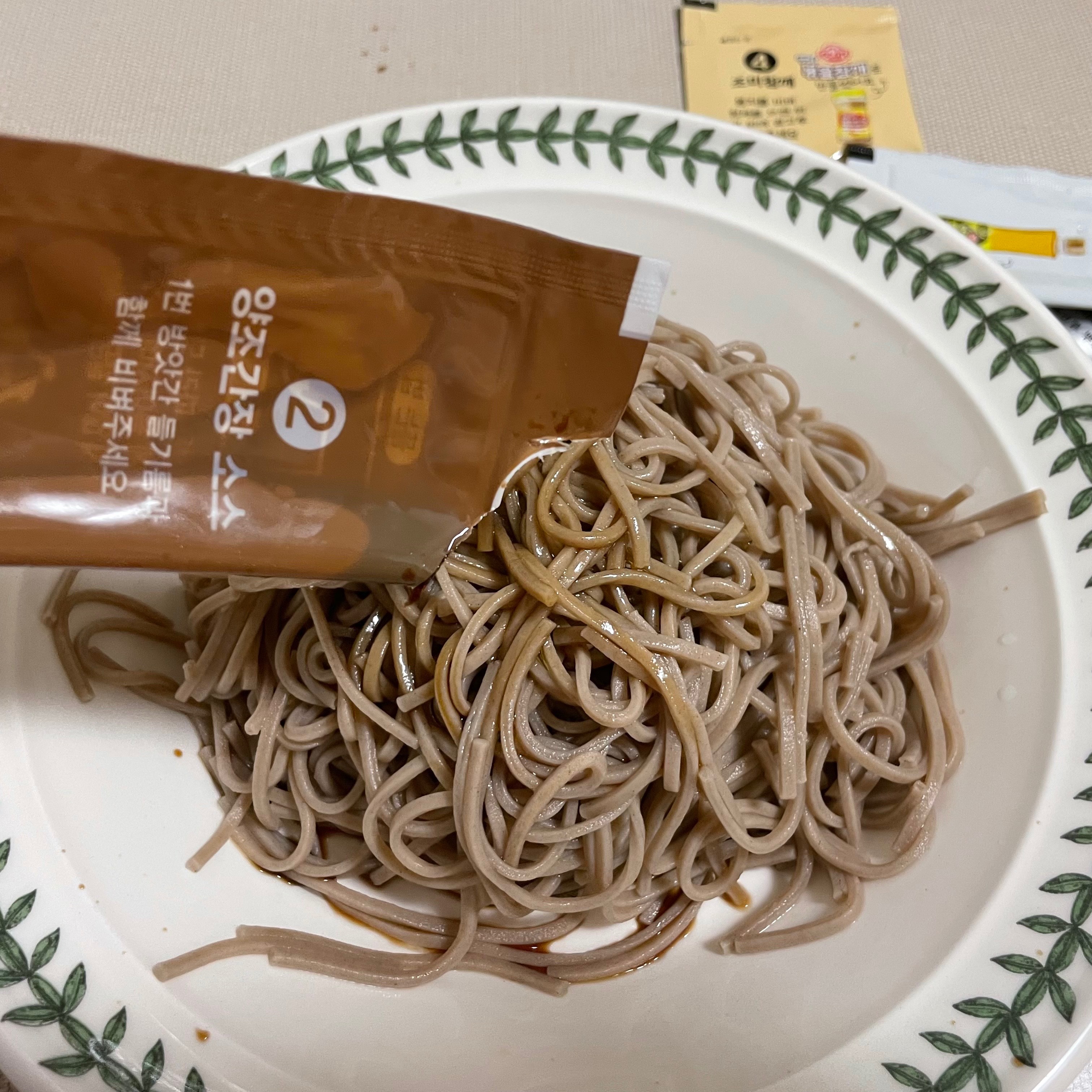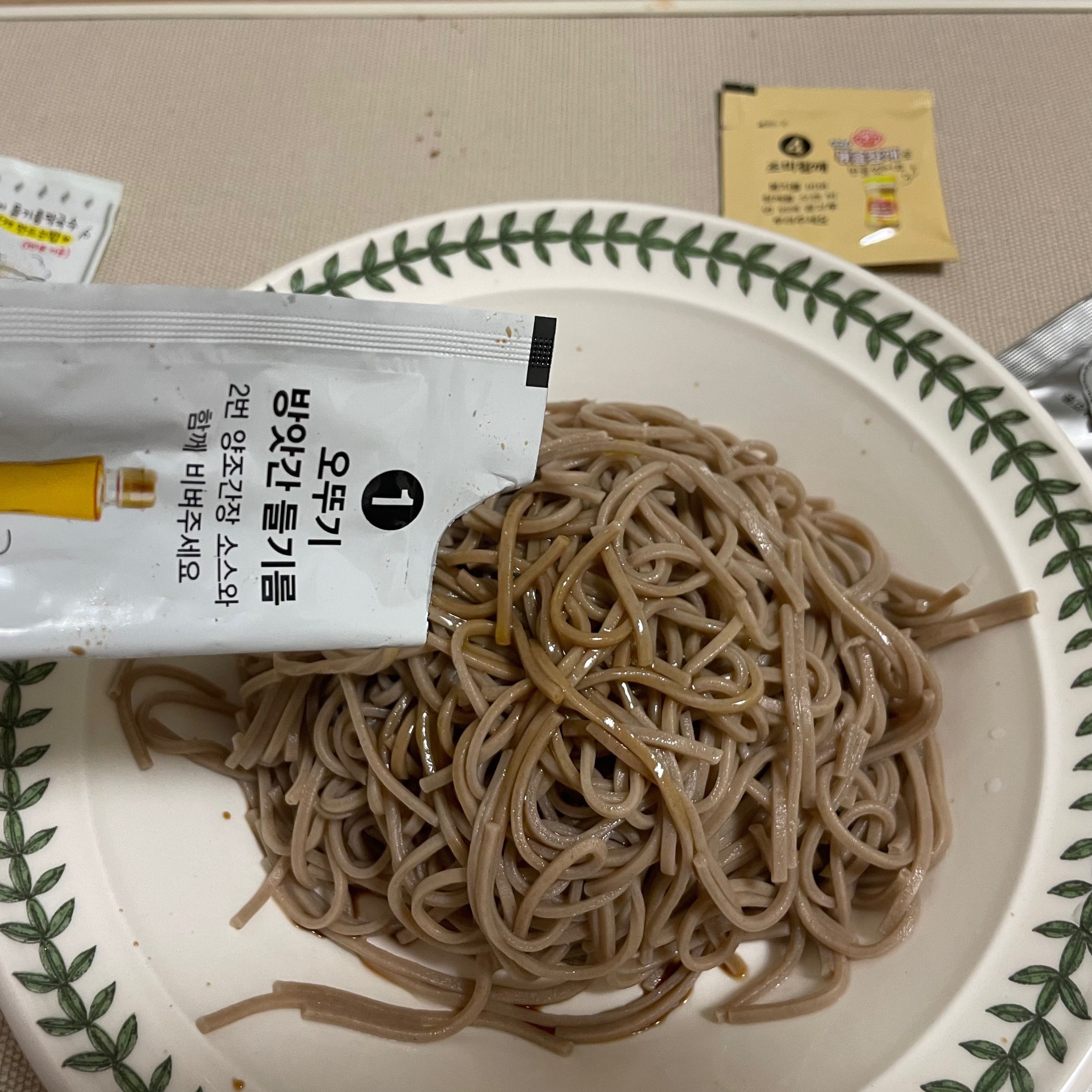 3번 김가루와 4번 볶은참깨를 넣어주면 오뚜기 고기리 들기름막국수 완성!