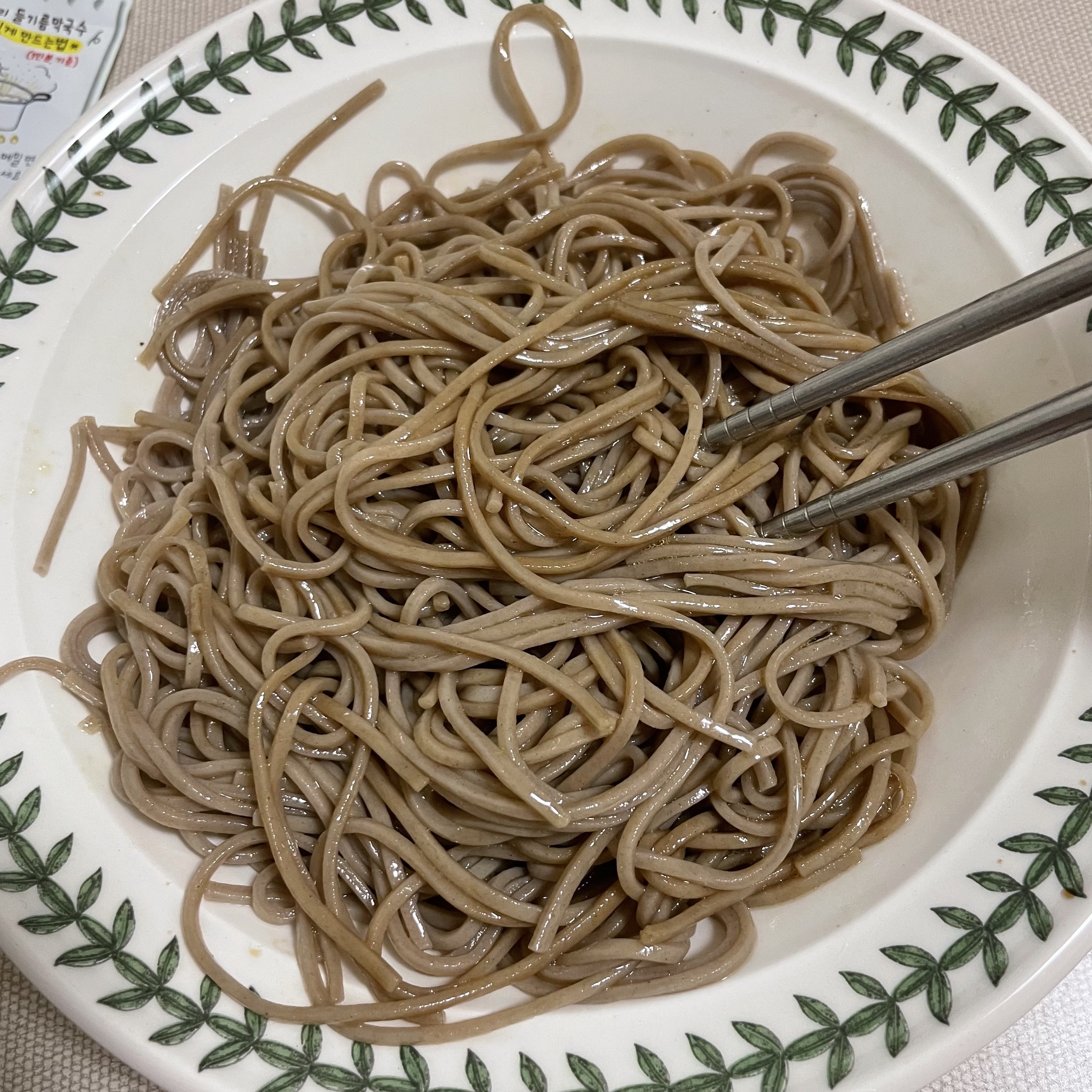 여기서 1번 들기름, 2번 양조간장을 넣어준 후 일단 면을 비벼줘야하는 것이 포인트입니다.
